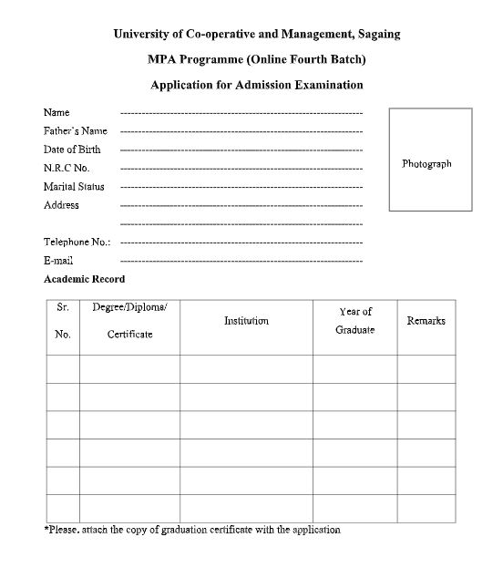 Uncategorized MPA Application Form များ Download ရယူရန် By UCMS Admin On January 10, 2026January 10, 2026 MPA-Letter-of-Recommendation-(Fourth Batch)for AcademicDownload MPA-Letter-of-Recommendation-Form- WorkDownload Application Form-(MPA Fourth Batch)Download